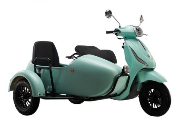 踏板125,整车三个颜色(淡蓝色、白色、橙色),单缸风冷四冲程发动机,百公里油耗仅2.2升、最高时速可达80km/h,前碟刹后鼓刹、采用LED大灯、液晶仪表、边斗自带安全带、后减震、行驶舒适、国四电喷、可以上牌。
